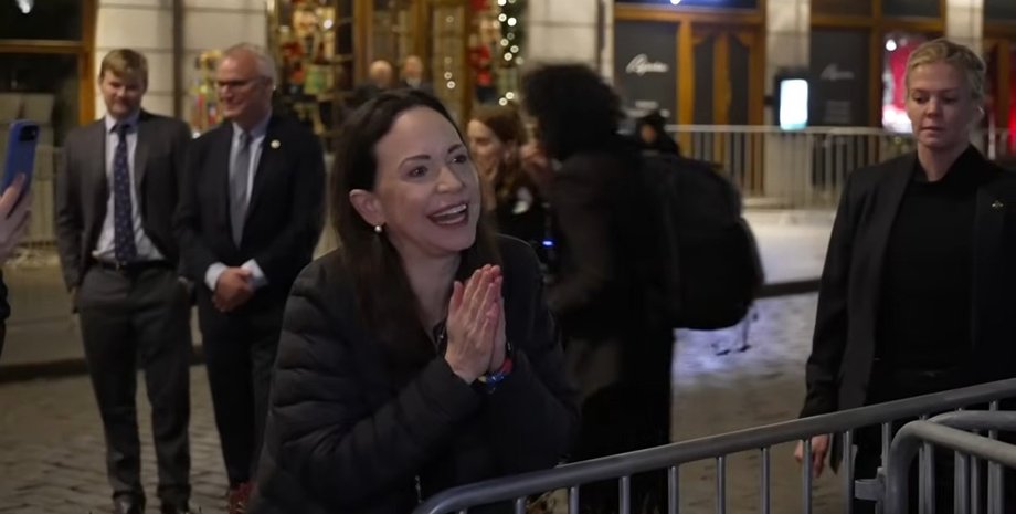 Мария Корина Мачадо в Осло Мария Корина Мачадо впервые появилась на людях после 11 месяцев | Скриншот