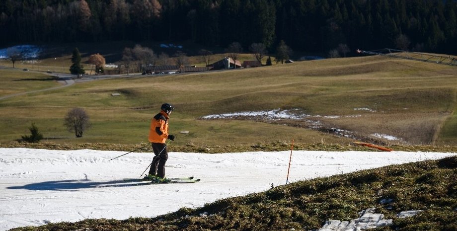 На склонах некоторых европейских центров зимних видов спорта, включая Северные Альпы и Тироль в Австрии, можно увидеть участки травы, камней и земли. Так что лыжникам приходится подниматься выше в горы.