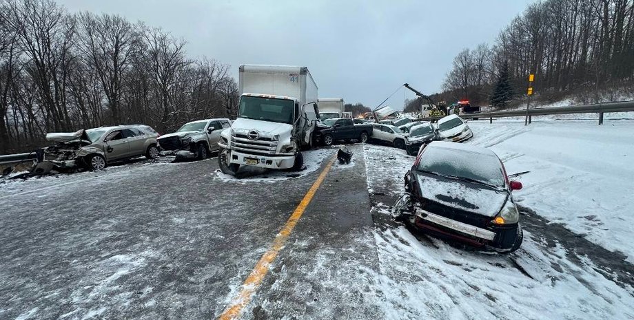 Небывалый гололед спровоцировал масштабные ДТП в Нью-Йорке Соцсети